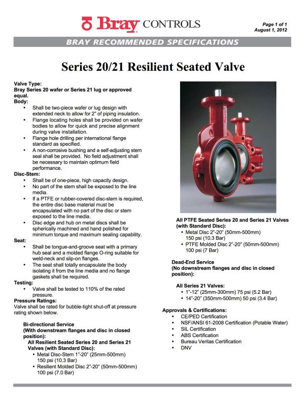 Bray Series 30/31 Resilient Seated Butterfly Valve